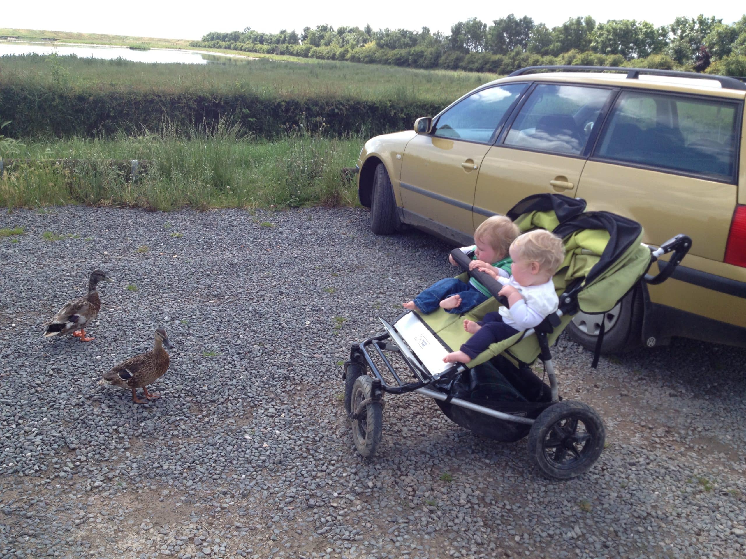 The twins, double buggy and I set off on the trail around the saltwater lagoon. Just a little way into the trail is a large hide looking out over the lagoon. I’m no twitcher but I’m sure I spotted avocets and lapwings amongst the obvious gulls.